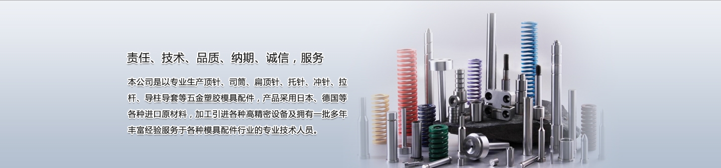 以專業(yè)生產(chǎn)頂針、司筒、扁頂針、托針、沖針、拉桿、導(dǎo)柱導(dǎo)套等五金塑膠模具配件,產(chǎn)品采用日本、德國等各種進(jìn)口原材料,加工引進(jìn)各種高精密設(shè)備,同時擁有一批多年豐富經(jīng)驗(yàn)服務(wù)于各種模具配件行業(yè)的專業(yè)技術(shù)人員。